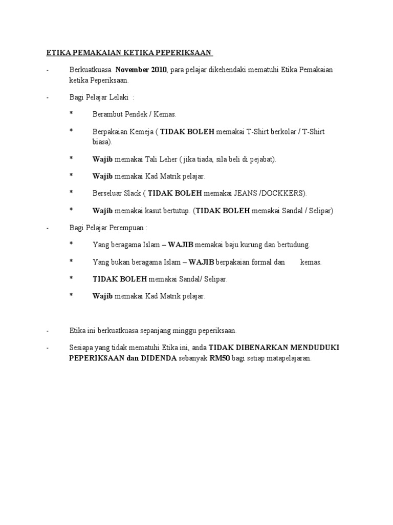 Etika Pemakaian Ketika Peperiksaan