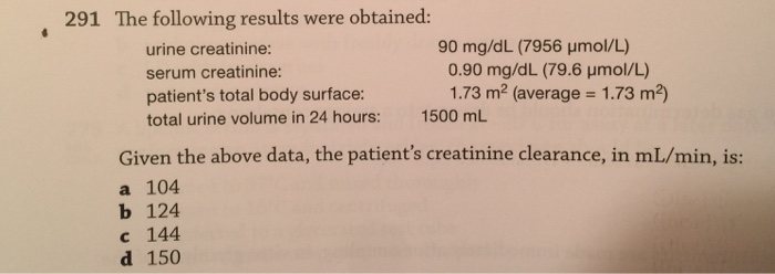 Solved 291 The Following Results Were Obtained 90 Mg Dl Chegg Com