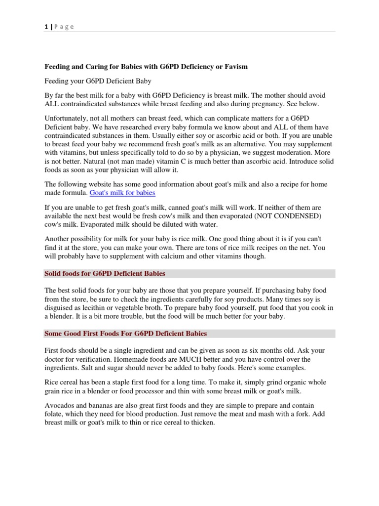 Natural Food Options For Babies With G6pd Deficiency