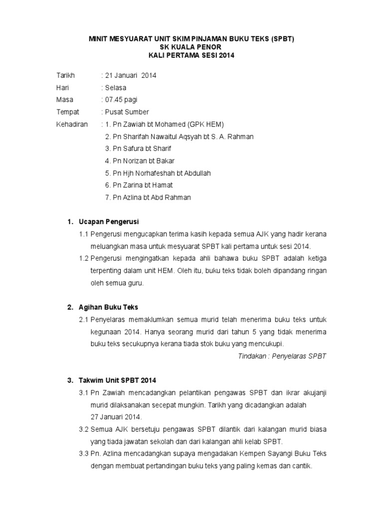 Minit Mesyuarat Skim Pinjaman Buku Teks Kali Pertama 2012 Docx Document