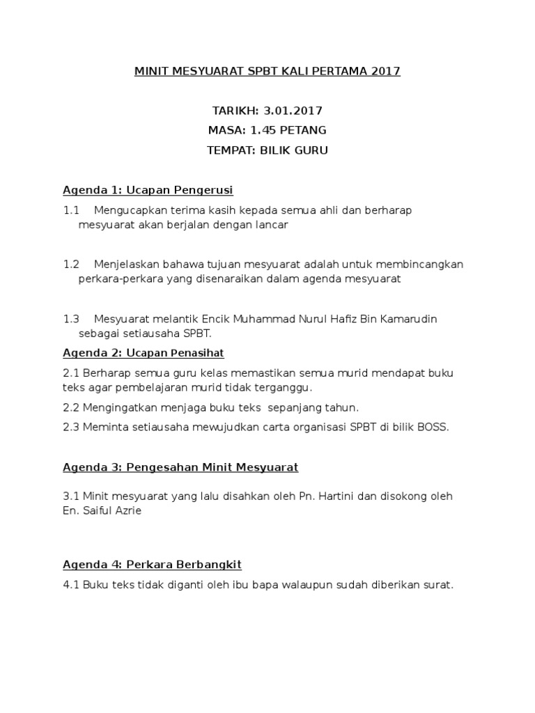 Minit Mesyuarat Spbt Kali Pertama 2017