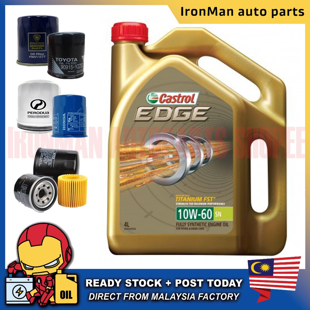 Original Castrol Edge 5w 40 Fully Synthetic Engine Oil 4l Minyak Hitam 5w40 Combo Oil Filter Shopee Malaysia