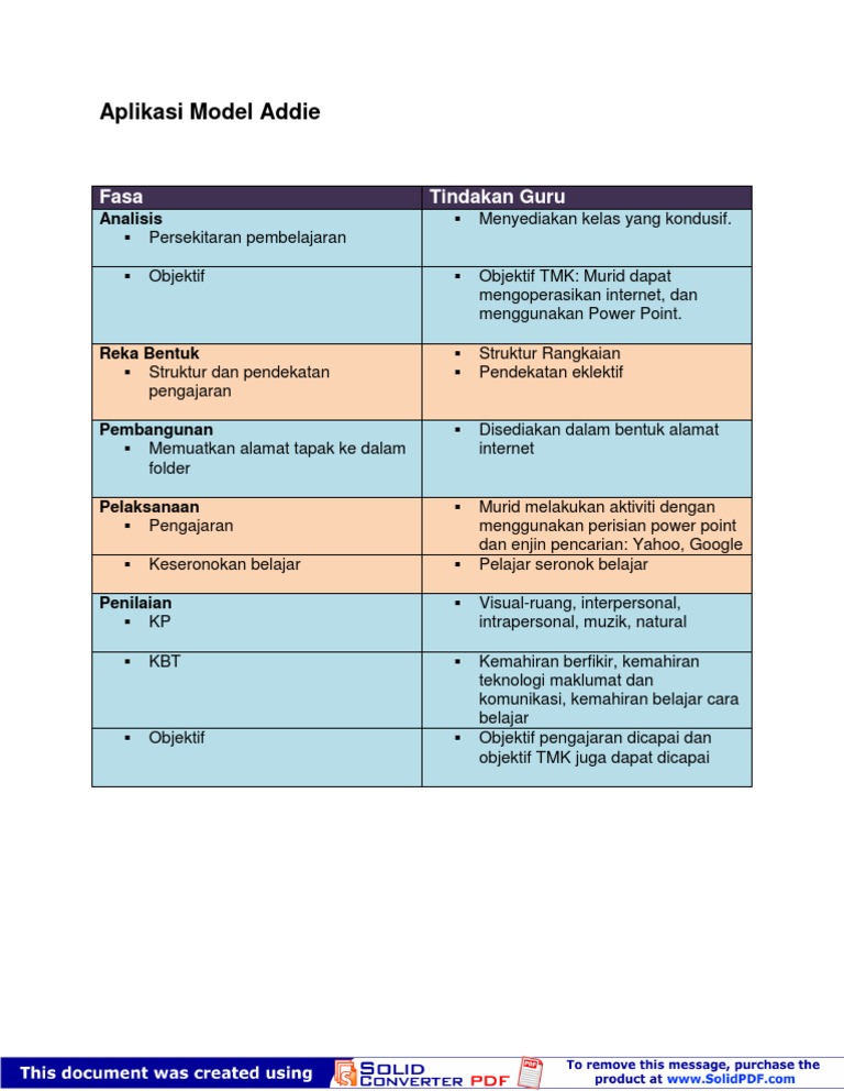 Model Addie Teknologi Dalam Pengajaran Dan Pembelajaran