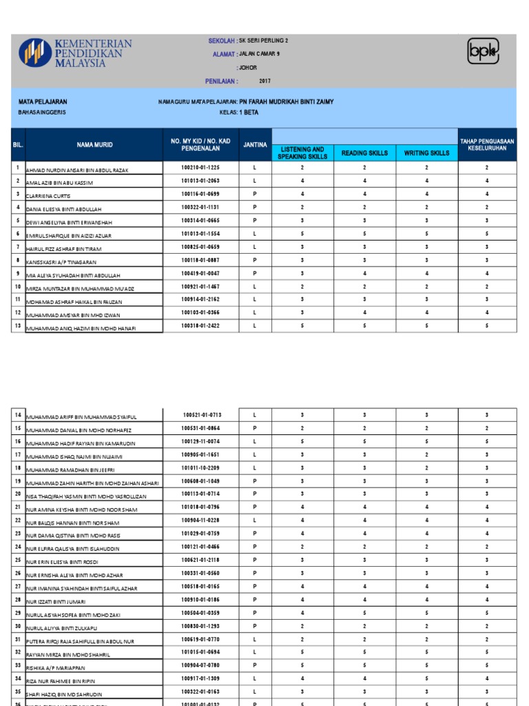 Koleksi Terkini Templat Pelaporan Pbd Kssm Tingkatan 1 Pentaksiran Bilik Darjah Bumi Gemilang