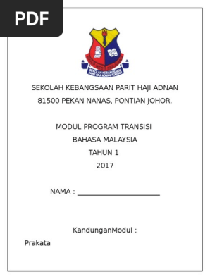 Modul transisi tahun 1 2017 docx. 0 comments 2 likes statistics notes. Minggu 1 orientasi 3 januari 2017 hari masa hasil pembelajaran aktivit i catatan bbm selas a 03 1 2017 8 20 9 50 suaikenal murid dan guru menyesuaikan diri dengan persekitaran dan kawasan sekolah perhimpunan pagi pengurusan kelas menyambut.