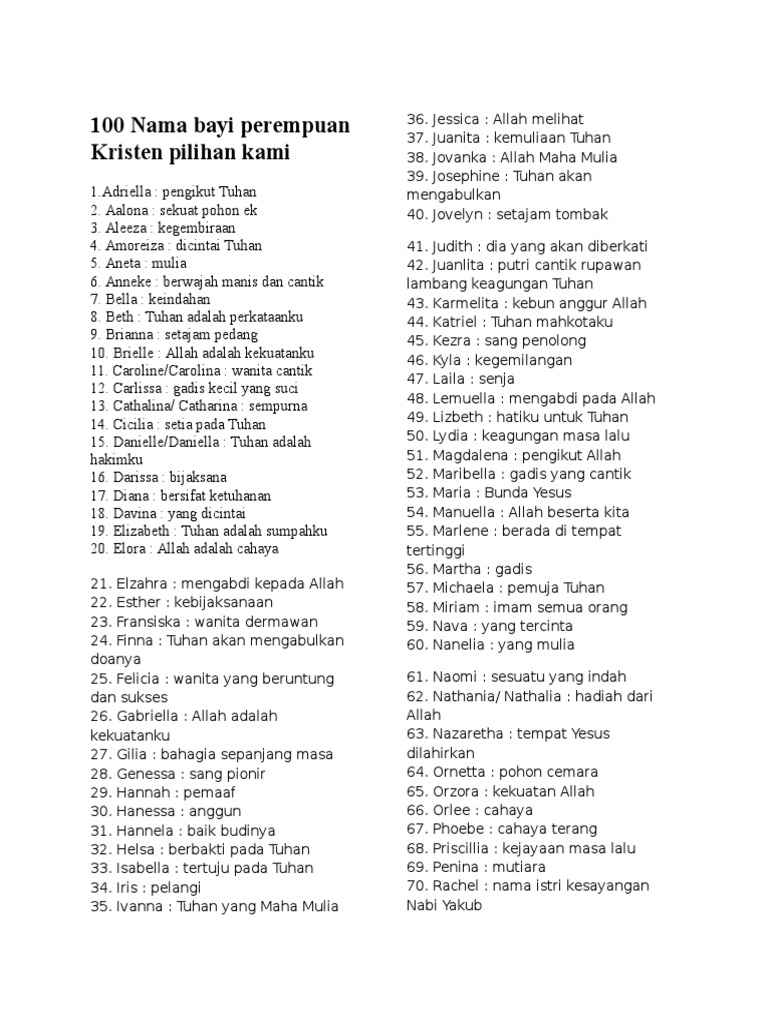 Rangkaian Nama Bayi Perempuan Kristen Dan Artinya Dibawah Ini Terdapat Beberapa Contoh Rangkaian Nama Lengkap Anak Nama Bayi Laki Laki Kristen Bayi Perempuan