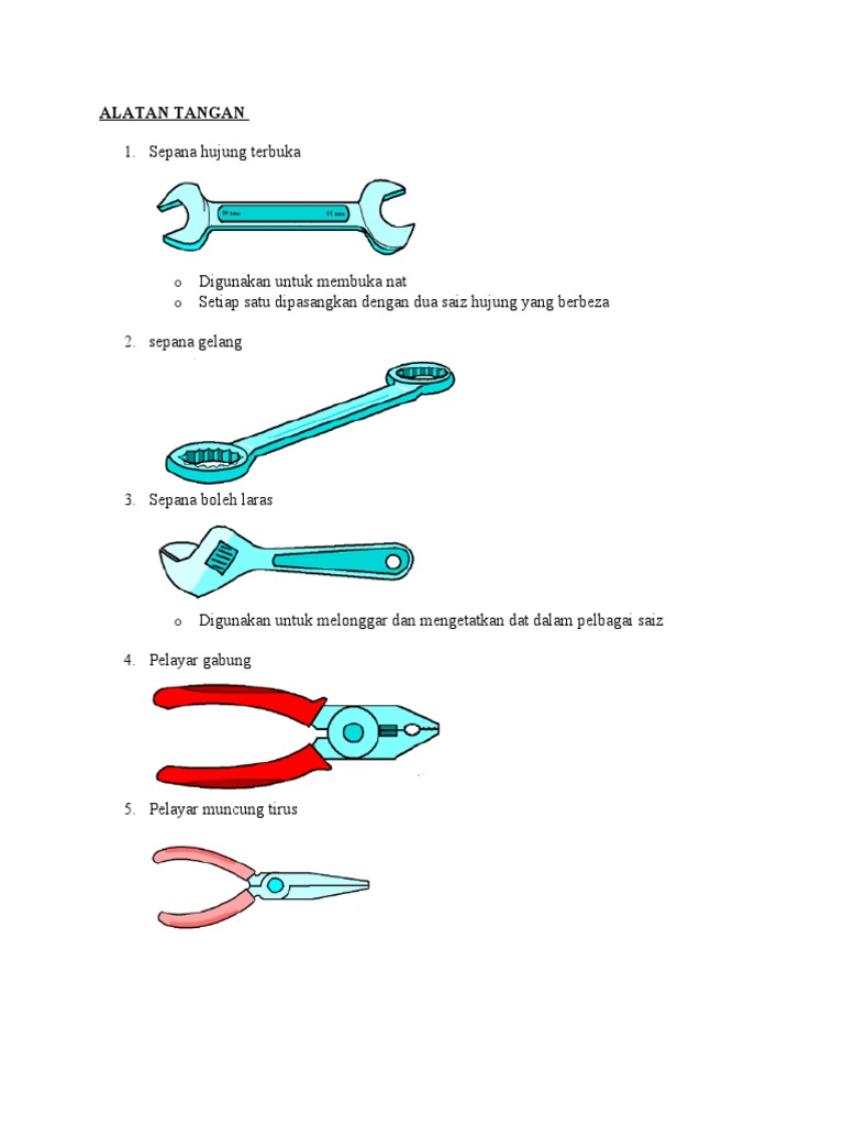 Jenis Alatan Tangan Dan Fungsinya