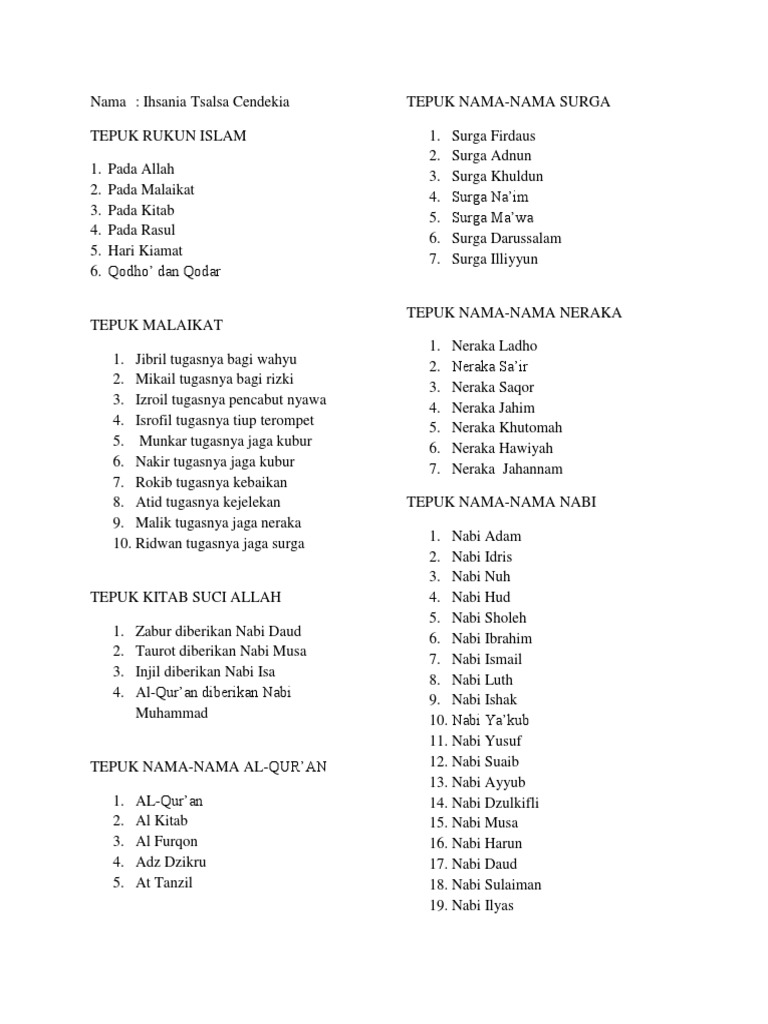 Download Gratis Worksheet Nama Nama Dan Tugas 10 Malaikat Malaikat Belajar Pendidikan