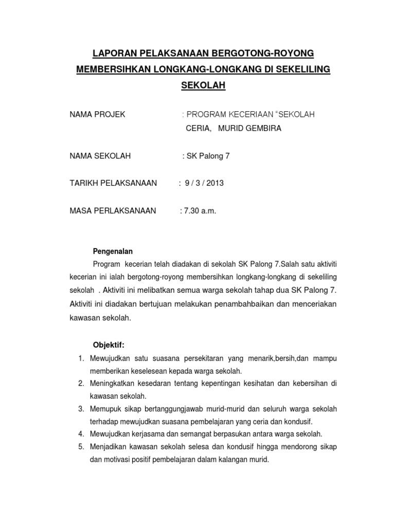 Laporan Pelaksanaan Internship Program Keceriaan Sekolah Pdf Document