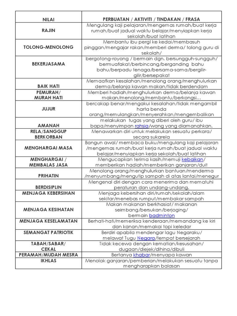 Senarai Nilai Murni Dan Maksud Doc
