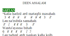 Not angka lagu deen assalam sulaiman al mughni cover by sabyan gambus dilengkapi notasi lirik partitur chord kunci gitar piano keyboard organ pianika biola suling recorder harmonika.