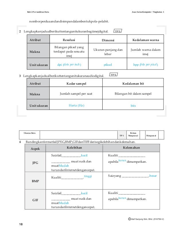 Sains Komputer Asas Sains Komputer Ask T1 Bab 2 Subtopik 2 2 Ukuran Data Nota