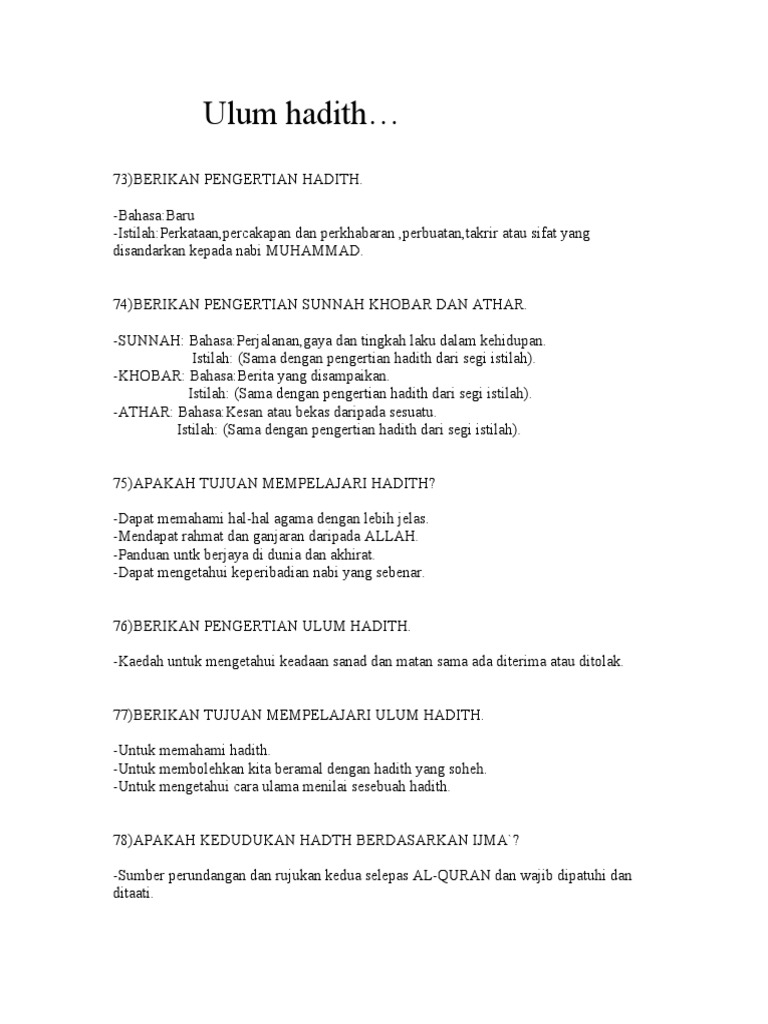 Pengajian Al Quran Dan Al Sunnah Ulum Hadith Tingkatan 4